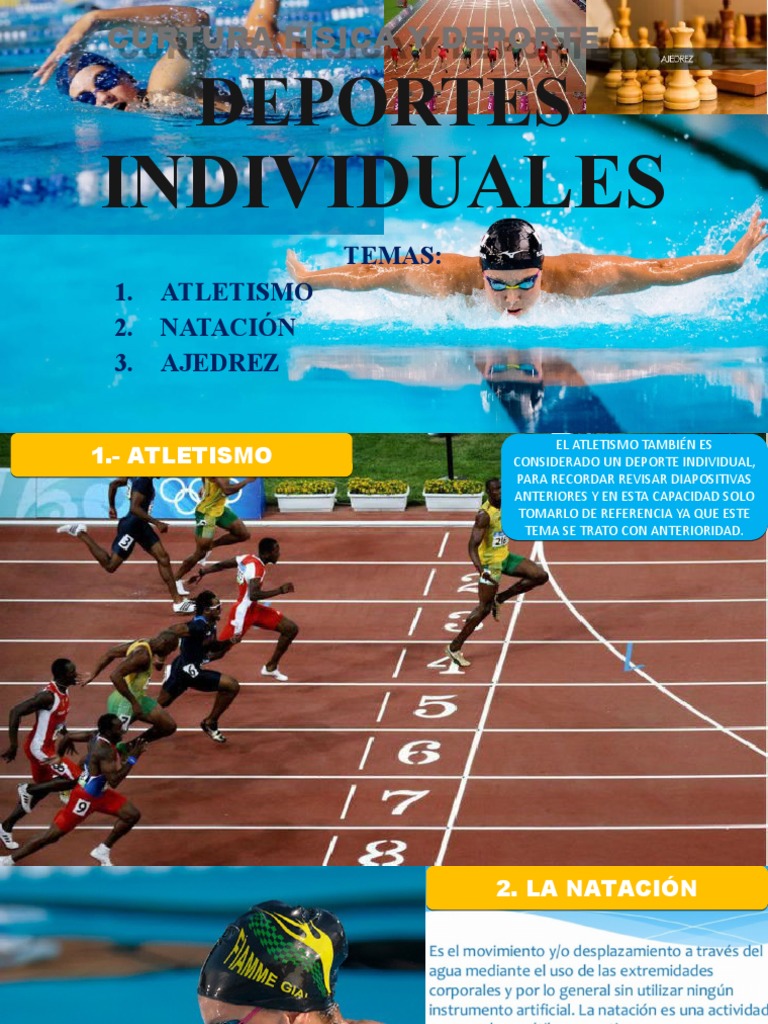 Las características más importantes de los deportes individuales son que el deportista está solo, es autosuficiente en donde se fija una autoevaluación, y tiene. En esta publicación te enseño las cuestiones más importantes sobre los deportes individuales. Taxonómicas de los deportes individuales ya fue reseñada en la tesis doctoral de díaz ocejo (2010) y, más recientemente, en la de carreras (2015). Soy el profesor rodrigo camilo y te invito a ver este video en donde conoceremos las características principales de los deportes individuales y en donde, ade. Los 20 deportes individuales que habilita la provincia de buenos aires atletismo, tenis, paddle, natación en aguas abiertas, canotaje , yachting, remo y golf son algunas de las actividades permitidas a partir de este lunes 19 de octubre.